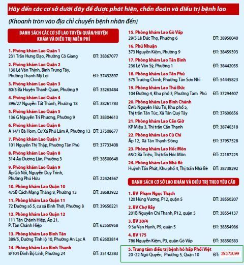 - Trực tiếp giám sát việc dùng từng liều thuốc của bệnh nhân, đảm bảo bệnh nhân dùng đúng loại thuốc, đúng liều, đều đặn và đủ thời gian. Việc giám sát sẽ được thực hiện tại các Tổ Lao Quận Huyện, phòng khám đa khoa khu vực, trạm y tế phường xã. Thân nhân bệnh nhân cũng có trách nhiệm tham gia nhắc nhở bệnh nhân.