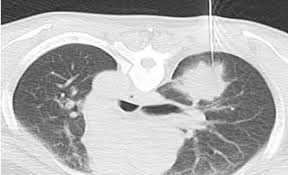 ►Sinh thiết phổi xuyên thành ngực dưới hướng dẫn của CT SCAN ngực: đây là kỹ thuật lấy mẫu mô từ khối u ở phổi qua một kim sinh thiết dưới sự dẫn đường của CT Scan ngực, thường thực hiện ở những u nằm ở ngoại biên mà kỹ thuật nội soi phế quản không thể tiếp cận được để lấy mẫu mô khối u làm giải phẩu bệnh.